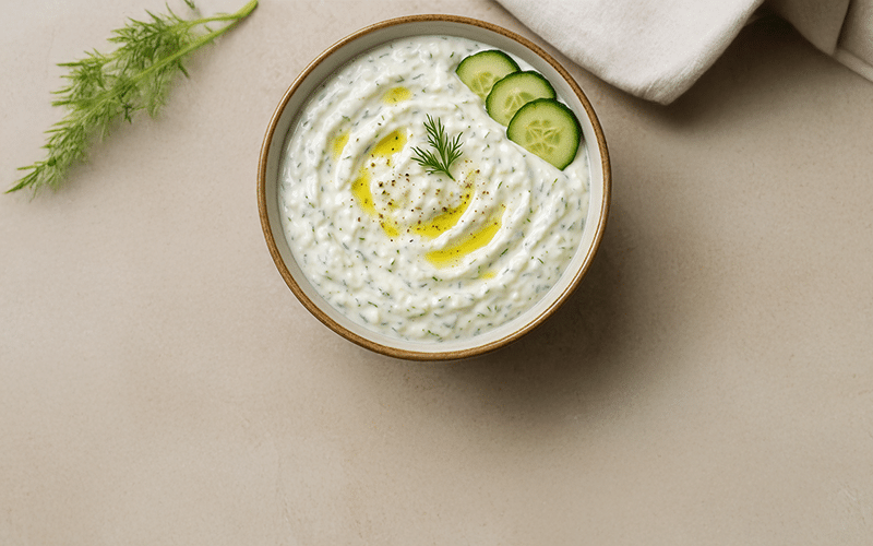 Tzatziki ist der wohl bekannteste Dip der griechischen Küche und ein unverzichtbarer Begleiter zu Grillgerichten, Meze-Platten und frischem Brot. Mit seiner cremigen Konsistenz und der perfekten Balance aus Knoblauch, Gurke und frischen Kräutern ist er der ideale Sommerbegleiter – leicht, erfrischend und voller mediterranem Geschmack.